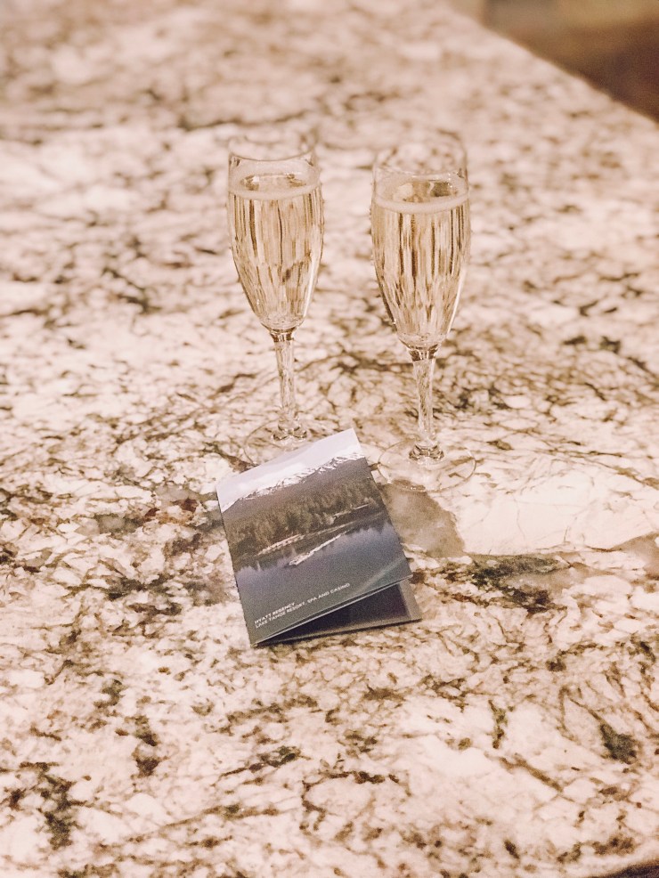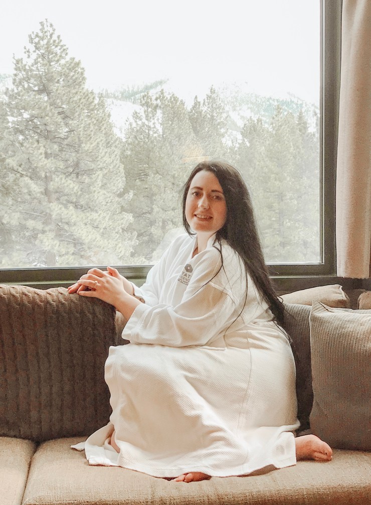 It had been some time since Matt and I had traveled. Life gets busy between work, two toddlers, and family. With our 4 year anniversary in February, we wanted to go somewhere new to celebrate and I had my eyes set on the beautiful Hyatt Regency Lake Tahoe Resort, Spa, and Casino nestled on the north end of the lake sitting on its very own beach. Hyatt Regency Lake Tahoe offers spectacular views, one of a kind rooms, suites, and cottages, fine dining, a wide variety of activities, a 24/7 casino, and a true Lake Tahoe experience. We arrived early afternoon on Wednesday after a 3 1/2 hour drive from down south in Sonora, Ca where we call home. Up CA 49 with many beautiful views and then on to CA 50 to where we were met with off the road waterfalls and snowy mountains. Upon arrival, valet welcomed us and we went into the grand entrance to be greeted by the front desk and checked up as we each were given a welcome glass of champagne! A perfect start to our getaway to Lake Tahoe.