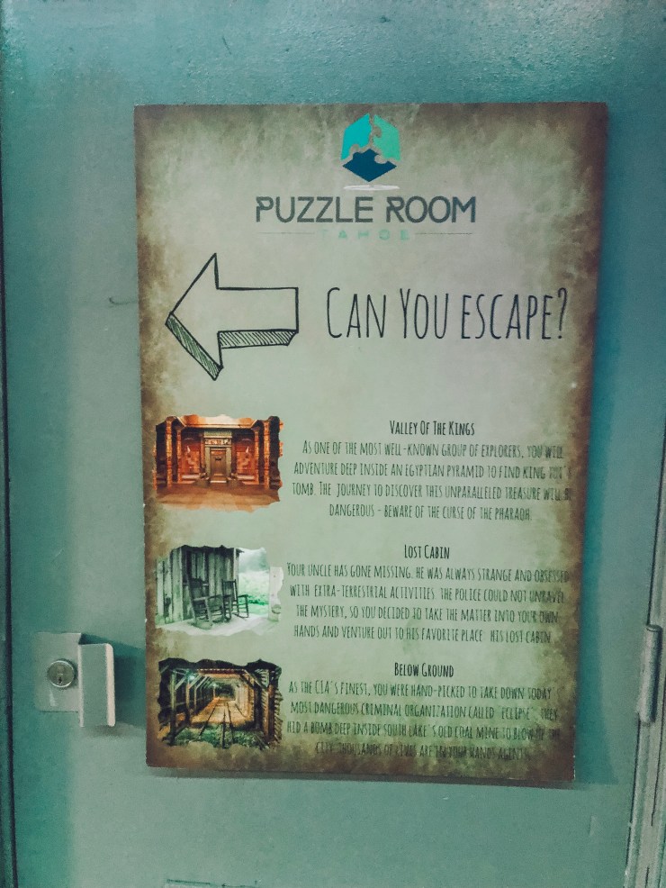 2. The Puzzle Room. Located right off of US-50, test yourself in one of The Puzzle Room’s unique escape rooms. It was my husband and I’s first experience doing an escape room and they did not disappoint. Walk down the stairs and get locked away with only you and your playmates left to find hidden clues, codes, and pictures to solve the puzzle. Sabrina was absolutely amazing and truly got us in the moment as we tried finding our uncles hidden clues in order to escape the lost cabin! With 3 different options to choose from as well as an additional escape room at Monte Blue, you are sure to have an unforgettable time.