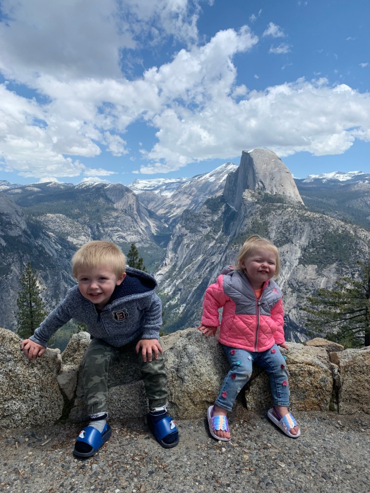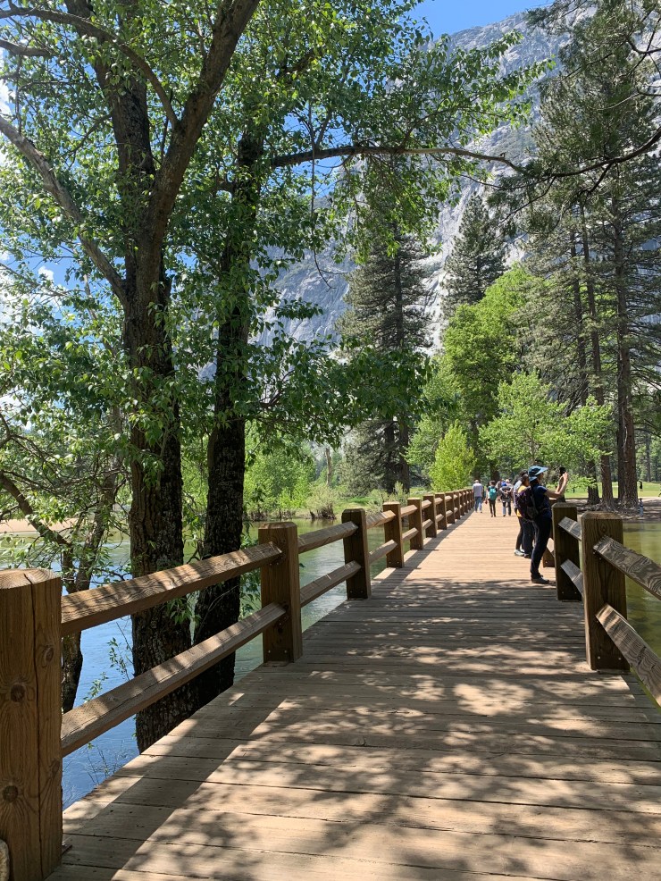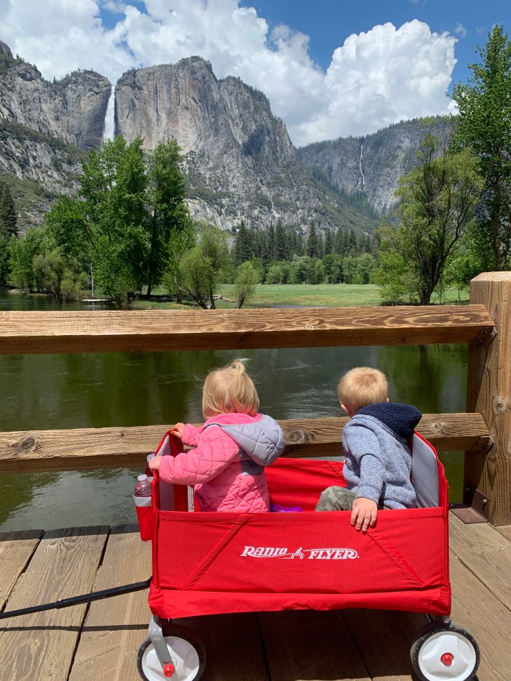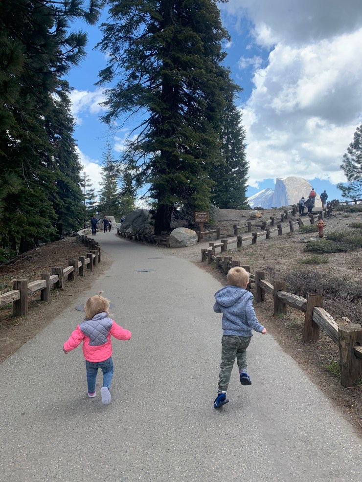 After doing a little bit of exploring and hiking, we headed on over to grab some food. With many different food options and even a Starbucks, we decided on some grill food and sat outside at the patio enjoying some fresh air. There is also free shuttle buses that are available to the public. The buses drive through out the valley floor making it convenient to park your car and hop on in going from stop to stop. With countless trails, waterfalls, bridges, and meadows, you are sure to find something to do for everyone. Our kids love the outdoors and all things “mountain” so Yosemite was the perfect day trip for them. They loved seeing the beautiful waterfalls, running through the meadows, and seeing the “biiiig rocks” as Macyn says.