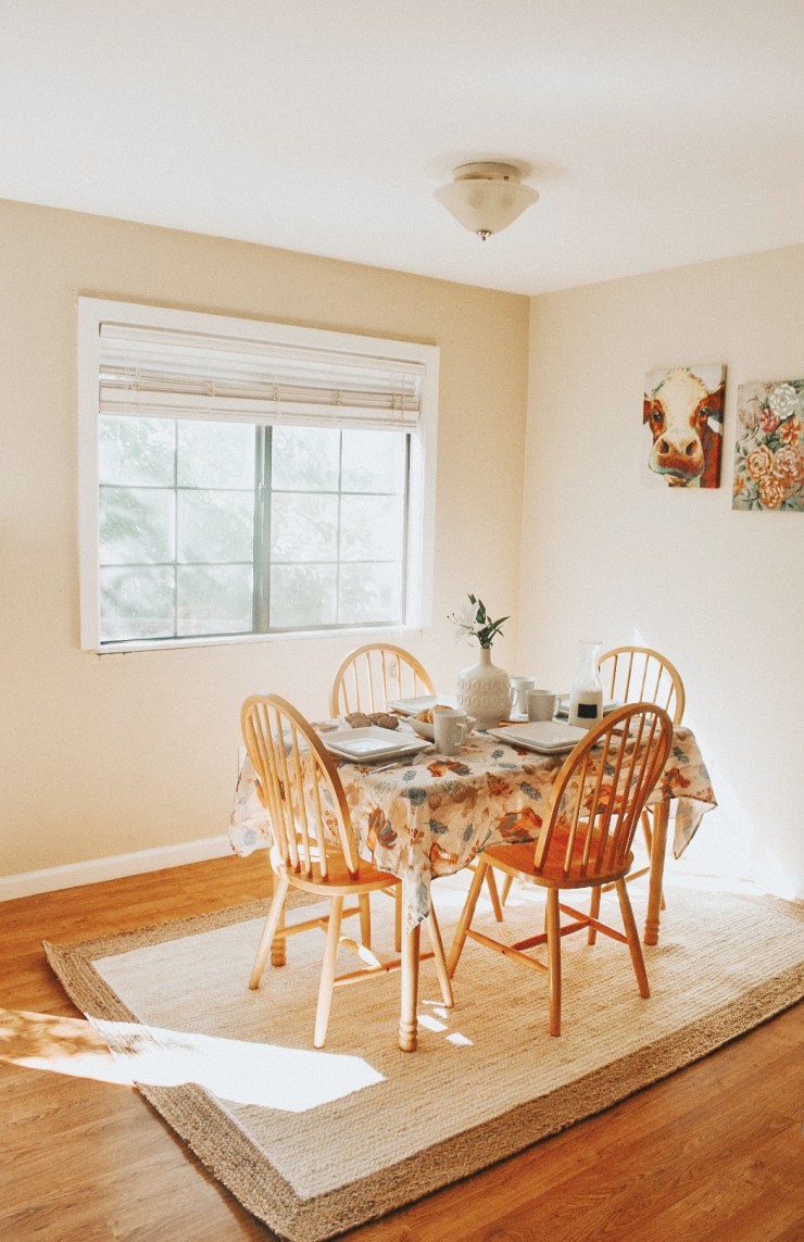 I am so excited for more morning breakfasts around the table and fun dinners after a long day. When we moved into our house, I was so excited to decorate but also stay on a tight budget. Our new farmhouse dining room all together was under $175 and looks beautiful!