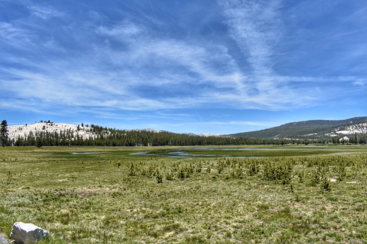 We stopped for some sight seeing along the way before making it to a special swimming spot at Tenaya Lake. We were surprised how quiet the lake was and soaked in the view while swimming. This lake is all fed from snow melt and if you look to some of the far mountains you can see some left over snow from the winter. Afterwards we continued on to Tuolumne meadows.