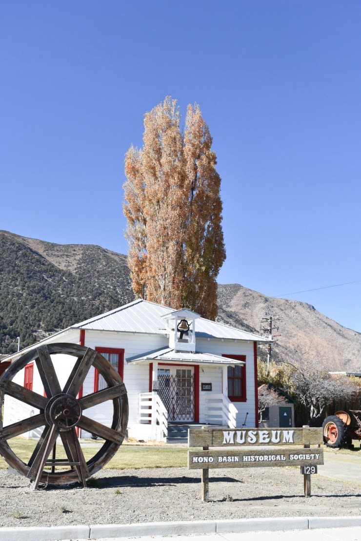We stopped at the Mono Basin Museum but it was closed. Around the museum, there are a ton of old tractors, an upside down house, and items from the gold rush days.