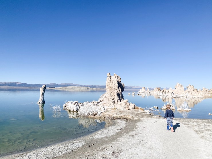 Since the kids have been raised in the mountains, it is honestly their happy place! Matthew and I always joke because the kids have more fun in the woods than they did when we took them to Disneyland this past summer. After some sightseeing, we arrived in Bridgeport. During this time of the year, most of the shops and restaurants have closed for the season. That didn’t stop us from exploring though. We walked around, let the kids play, and saw some beautiful buildings. Mono county has so much rich history, with being a history lover myself it’s the perfect spot to soak in the gold rush history. From there, we headed to Mono Lake and Lee Vining. Mono Lake is a saline soda lake that was formed at least 760,000 years ago. Due to no outlet, the lake water is alkaline. Famous for its Tufa Towers and Alkali Flies, Mono lake is a must stop spot when visiting Mono County.