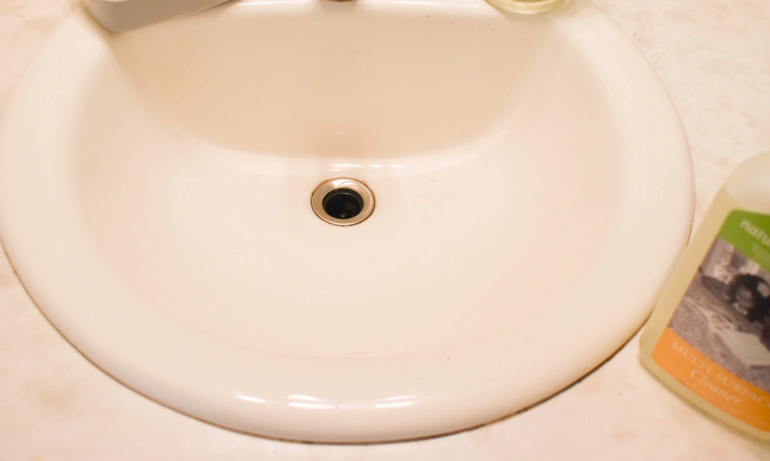Most people, like myself, have a certain routine when cleaning the bathroom. First I spray the toilet with Naturally It’s Clean Toilet spray as well as the bathtub with Naturally It’s Clean Multi-Purpose Spray. Then I let it do it’s magic and move on to the rest of the bathroom cleaning the counters and sink.