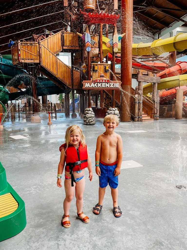 We went right to the water park to have fun! This is the first time we went just the three of us my husband had some prior work commitments. I was surprised how easy it was to navigate both of the kids alone in the kids after park. They had a complete blast going down all the water slides, wave pool, lazy river, and fun activity pools. McKynleigh braved her first big water slide, and loved every moment of it!