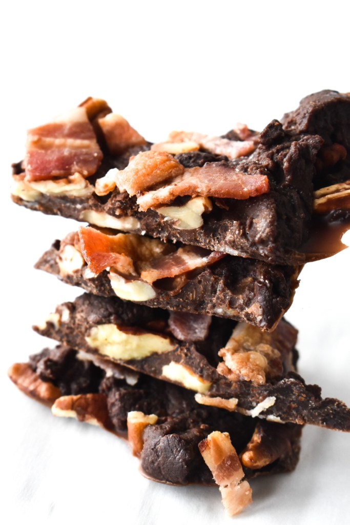 Now this treat screams KETO! — from the bacon, the dark chocolate, up to the nuts and seeds.