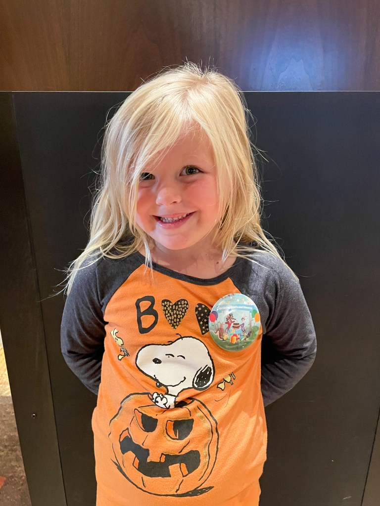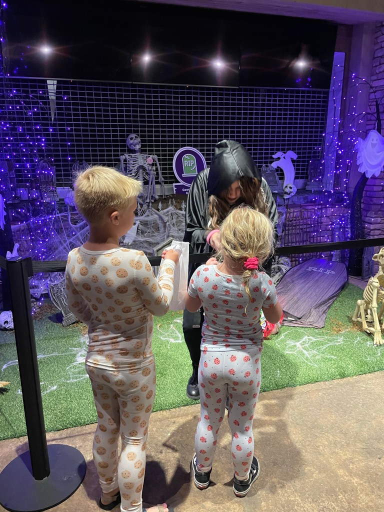 We got to Great Wolf Lodge before our suite was ready so we decided to get changed and have fun in the water park. McKynleigh loves the water slides so we spent our time going down all the water slides and swimming in the outdoor pool. In October, Great Wold Lodge has their Howl-O-Ween events happening. The entire lodge is decorated and there are fun holiday events each day including shoes, crafts, special stories, and fun dance parties. After we made it to our suite, we got changed and went back down for some fun trick-or-treating around the lodge.