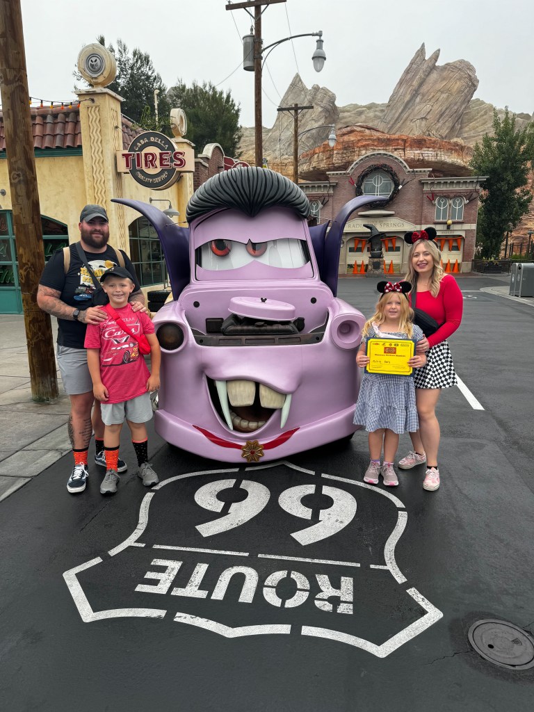 One of the highlights of our trip was our special experience in Cars Land. We were fortunate enough to be the first ones in the area, which allowed us to enjoy a private tour. Walking through Radiator Springs before the crowds arrived was a surreal experience. The details in the land are incredible, and seeing it all in the morning light made it feel even more magical. Our daughter was thrilled as she met her favorite characters and took photos in front of the iconic Cozy Cone Motel, followed by riding Radiator Springs for the first time ever.