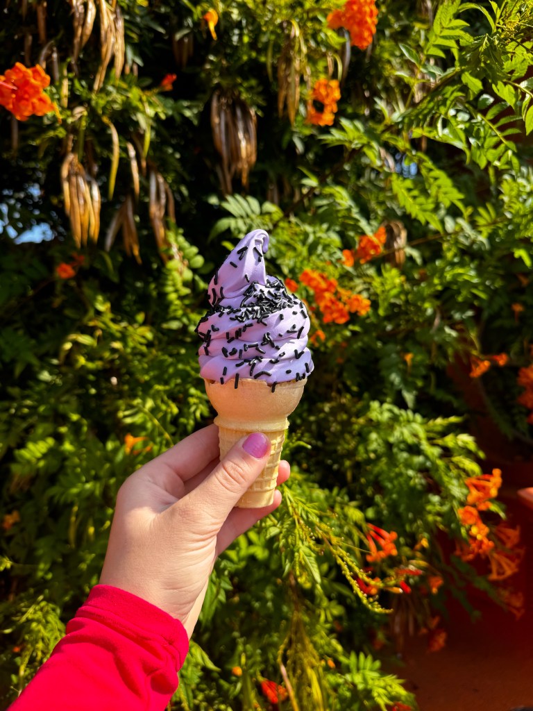 As for the food, we indulged in some amazing treats that we’ll be dreaming about for a long time. The Dole Whip was an absolute must-have; its refreshing pineapple flavor was perfect for the warm autumn day. We also enjoyed the garlic cheesy brat, a savory delight that packed a flavorful punch. The Boo-gogi toasted sandwich with corn cheese soup was another standout—comfort food at its finest. To wash it all down, we sipped on mint juleps that added a refreshing twist to our culinary adventure. And we couldn’t leave without trying the ube soft serve; its vibrant purple color and unique flavor were the perfect ending to our meals.